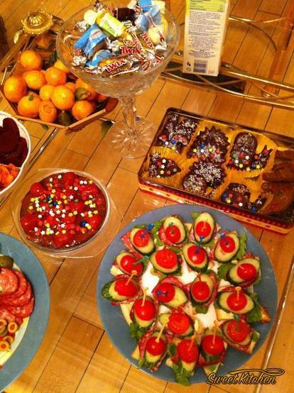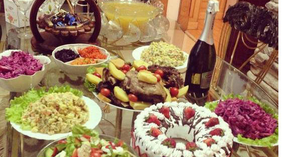 Испаничууд шинэ жилийн ширээндээ хонь, цацагт хяруул, тооройн шарсан мах зэрэг ямбатай хоол шүүс заавал тавьдаг. Хоолоо <<Херес>> нэртэй дарсаар үе үе даруулдаг.