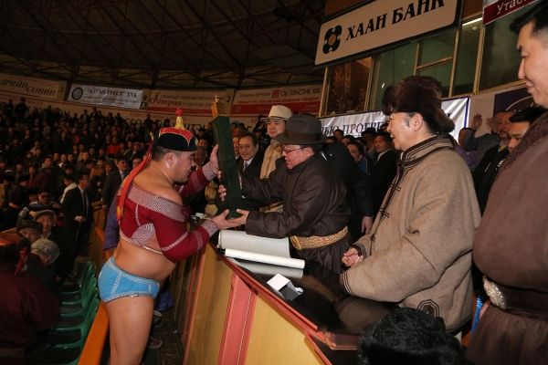Монгол Улсын Ерөнхийлөгчийн цомын төлөөх чансаа өндөр, шигшмэл 128 бөхийн барилдаанд түрүүлсэн Улсын аварга С.Мөнхбатад Монгол Улсын Ерөнхийлөгч Ц.Элбэгдорж өөрийн зүүж явсан бугуйн цагийг дурсгал болгон бэлэглэв.