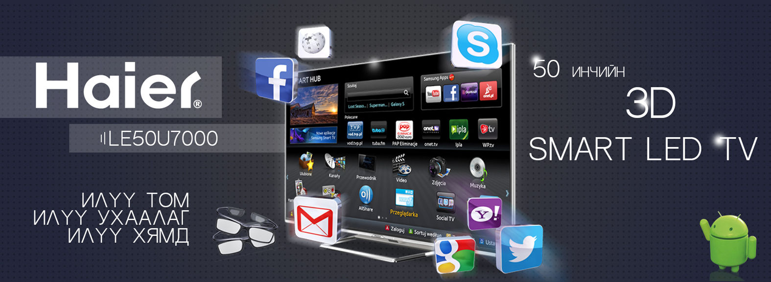 Таны ухаалаг сонголтонд PC mall их дэлгүүр Samsung, Haier брэндийн 40- 50 инчийн ухаалаг телевизоруудаа ухаалаг үнээр санал болгож байна.