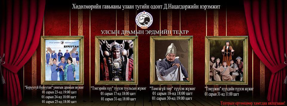 Улсын драмын эрдмийн театрын тайзнаа түүхэн болон уянгын жүжгийн сар эхэллээ. УДЭТ-ын 2015 оны эхний сарын үзвэрийн хуваарийг сонирхуулахад: