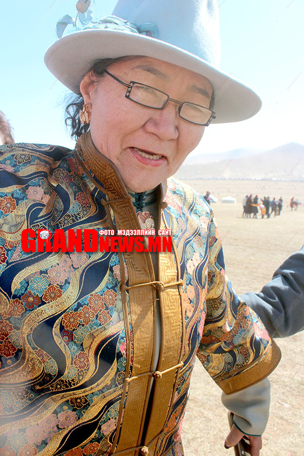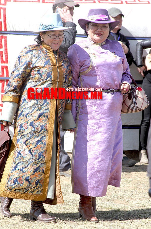 Алтан шүд гурвыг эгнүүлж бэл нүнжгээ гайхуулах Т.Цэрмаа гуай, торго дурдан ууж юуг томоос том ээмэг, зүүлттэй нь хослуулсан Х.Пүрэвбадам ахайтан. Аргагүй л төрүүлсэн хөвгүүд нь монгол тодотголтой наадмын дэвжээнээ хийморийн цагаан туг намируулан өөр өөрсдийнхөөрөө нэр сүрээ мандуулж, түүхээ бичилцэж яваа ээжүүд ийм л нүнжиг сэтгэлтэй байдэг гэлтэй явж харагддаг нь энэ.