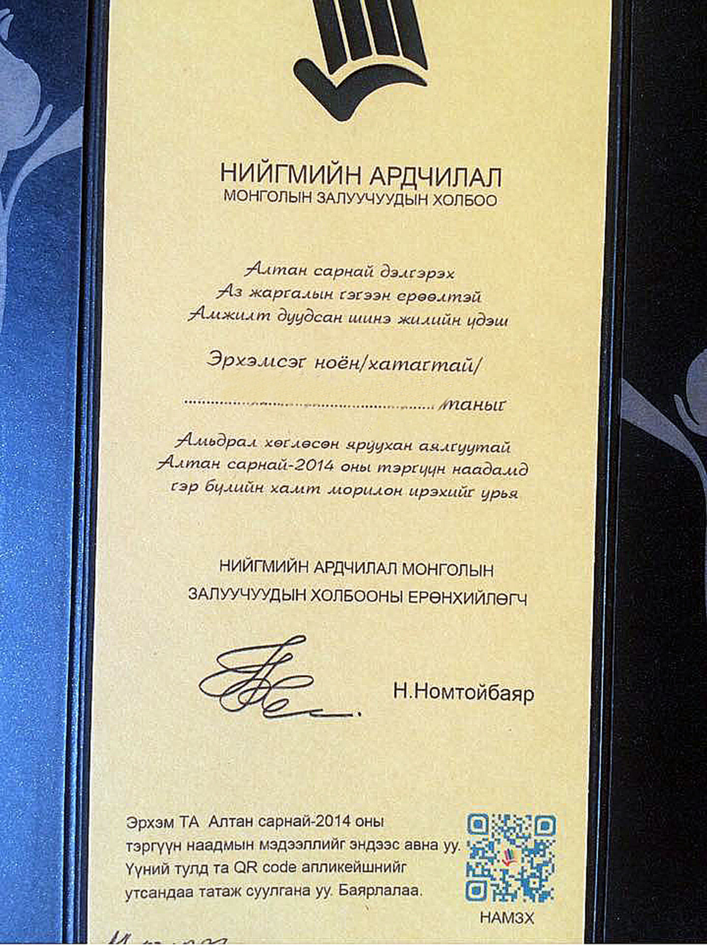 Албан тушаалыг гуйгаад эс олдвол гуядаад авч болно. НАМЗХ гэж амбицлахын дон шүглэсэн хийрхүү хэдэн нөхдүүдийг нэгтгэдэг “малгай” бий. Гэхдээ бас яг юу хийдэг яадаг ийдэг нь тодорхойгүй атлаа нуль рекламны пауз JCI-ийн хажууд арай нийгэмд ажил нь хүртээлтэй юм даа. НАМЗХ-ны үе үеийн ерөнхийлөгчид ирээдүйд улс төрд том албанд очдог. Одоогоор Л.Оюун-Эрдэнэ дээр хаяглагдсан энэ албанд суухыг хүсдэг хүн нэг бус байх. Тэгвэл өнгөрсөн шинэ жилийн “Алтан сарнай” наадмын үеэр нэг сонин зүйл болжээ. Тухайн үед хэн ч анзаараагүй гээд л бодчих. Юу гэвэл наадмын урилган дээр “Ерөнхийлөгч Н.Номтойбаяр” гээд дурайтал биччихсэн байсан байна. Уг нь мань эр үүрэг гүйцэтгэгч нь байсан юм л даа. Сэргэлэн нь л хоолоо олж иддэг хойно Л.Оюун-Эрдэнийг эзгүйд боломжийг төгс ашигласан байгаа юм чинь.