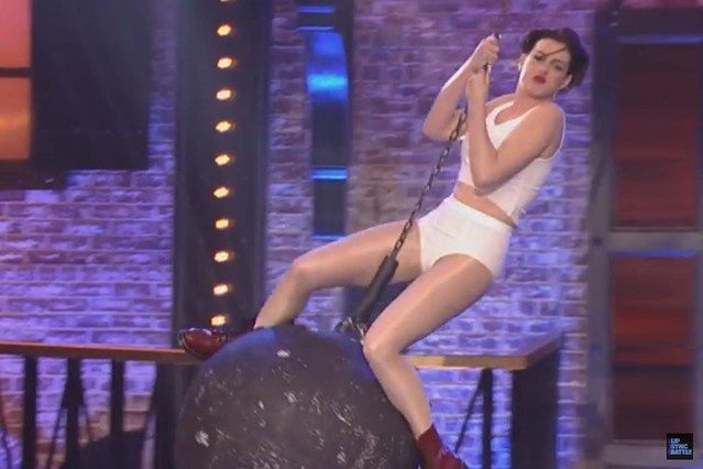 Нэг өдөр, гайхалтай үдшийг өнгөрөөдөг алдартнууд дэлхийд шинээр гарсан буюу хит дуунуудыг өөрсдийн хувилбараар шоглосон маягаар дуурайж дуулдаг байна. Энэ шоунд жүжигчин Emma Stone, Jennifer Lawrence, Will Ferrell, Kevin Hart, Jimmy Fallon, зэрэг олон алдартай одууд оролцсон билээ. Харин энэ удаад Жүжигчин Anne Hathaway дуучин Miley Cyrus-ийн “Wrecking Ball” дууг дуулжээ.