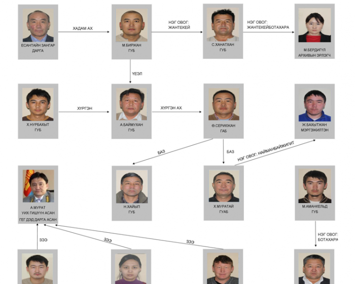 4. ГХБХ ГУБ Б.Ерлан, Т.Ардах, Эрэлч нохой хариуцсан ГУБ Н.Хумырзах нар өмнө нь ГЕГ-ын дэд даргаар ажиллах байсан А.Мураттай садан төрлийн харилцан хамааралтай. Тухайлбал ГУБ Т.Ардах нь Муратын төрсөн ах Талгатын охин нь юм.